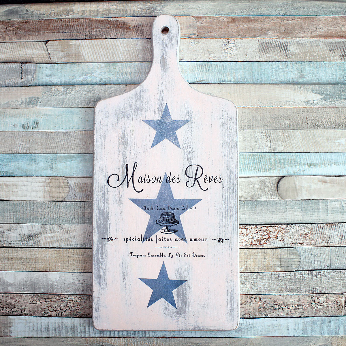 Decorative cutting board for the kitchen in pink and blue. Hand decorated and painted.