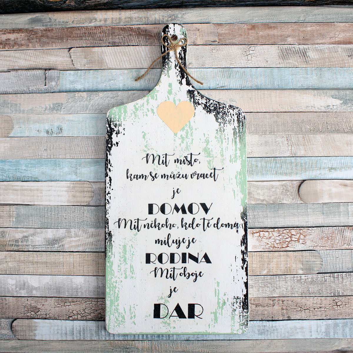Decorative cutting board for the kitchen in green color. Hand decorated and painted.