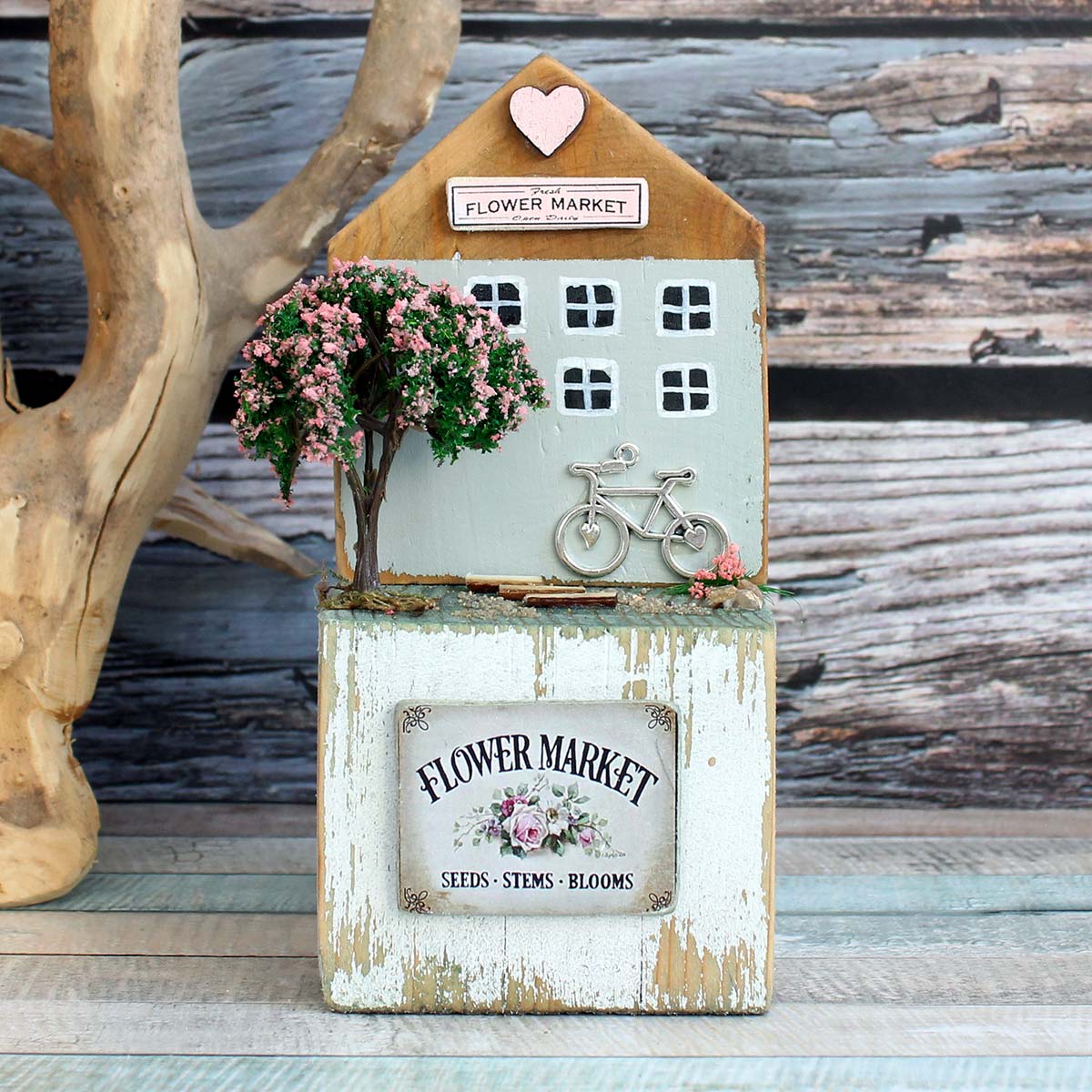 Beautiful decorative house, everything is handmade from our workshop. The houses are made of solid wood and hand-decorated and painted.