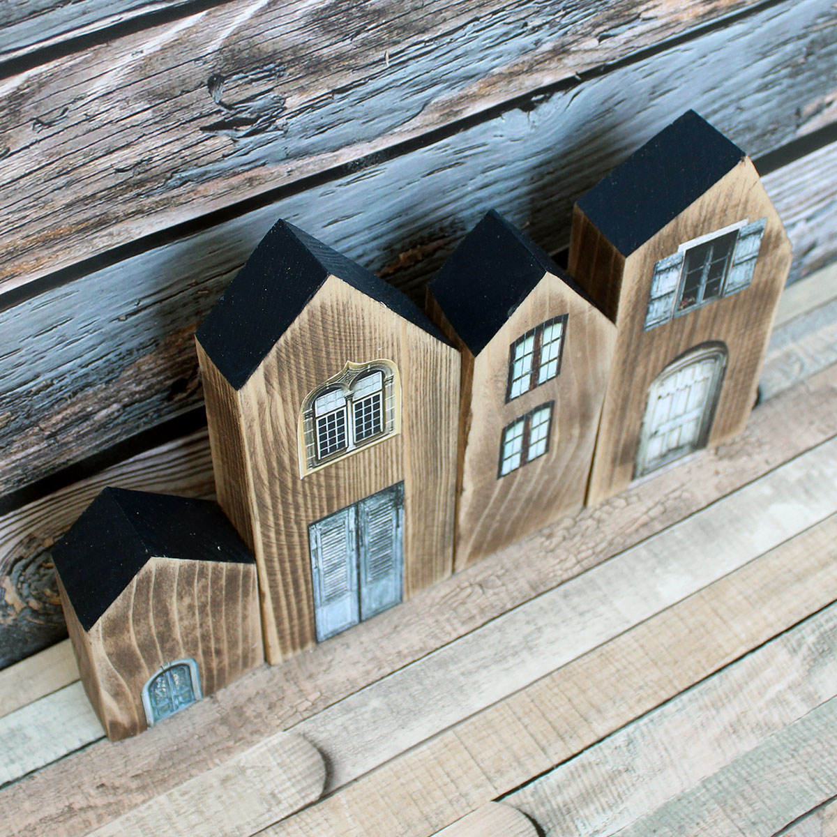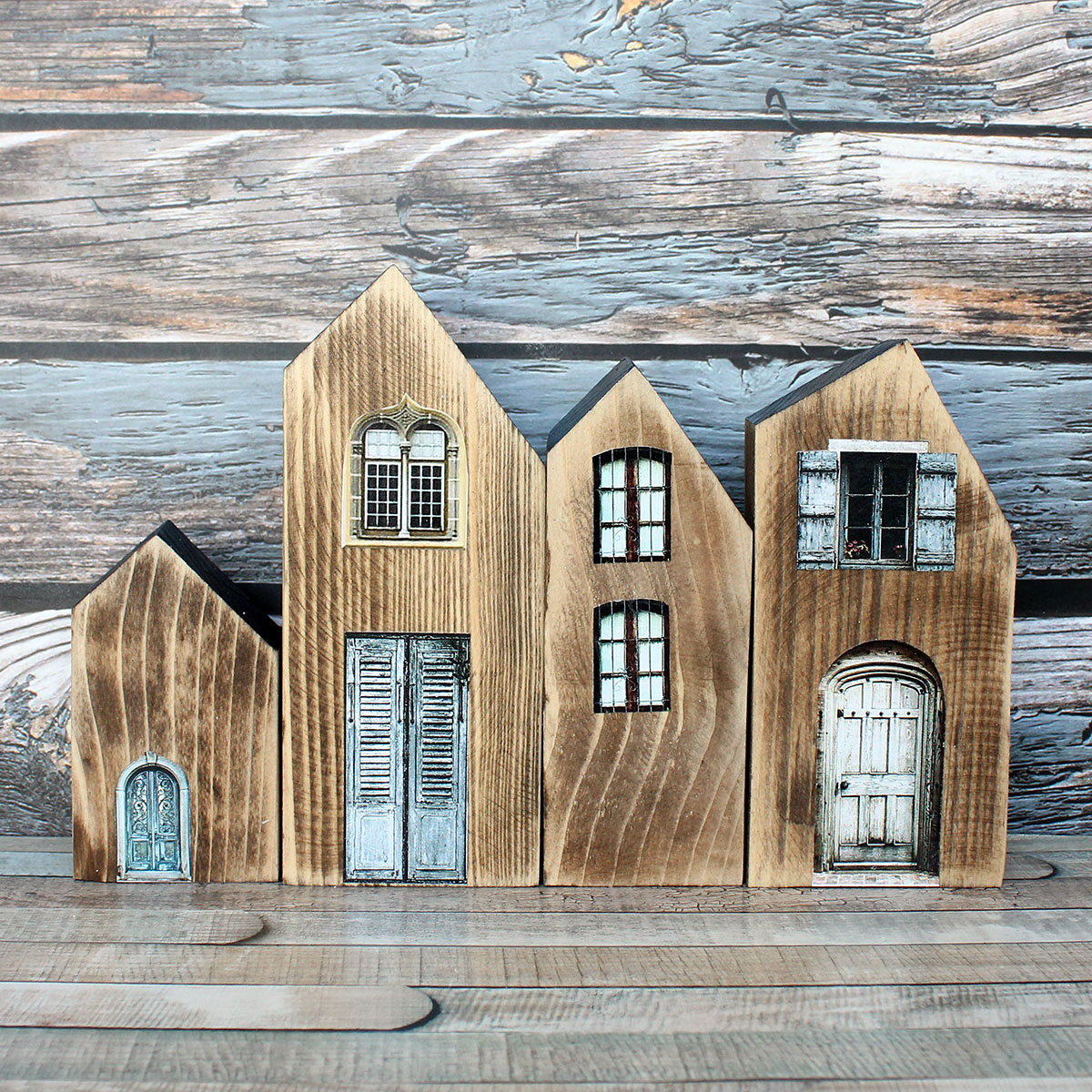 Beautiful set of decorative houses, everything is handmade from our workshop. The houses are made of solid wood and hand-decorated and painted.