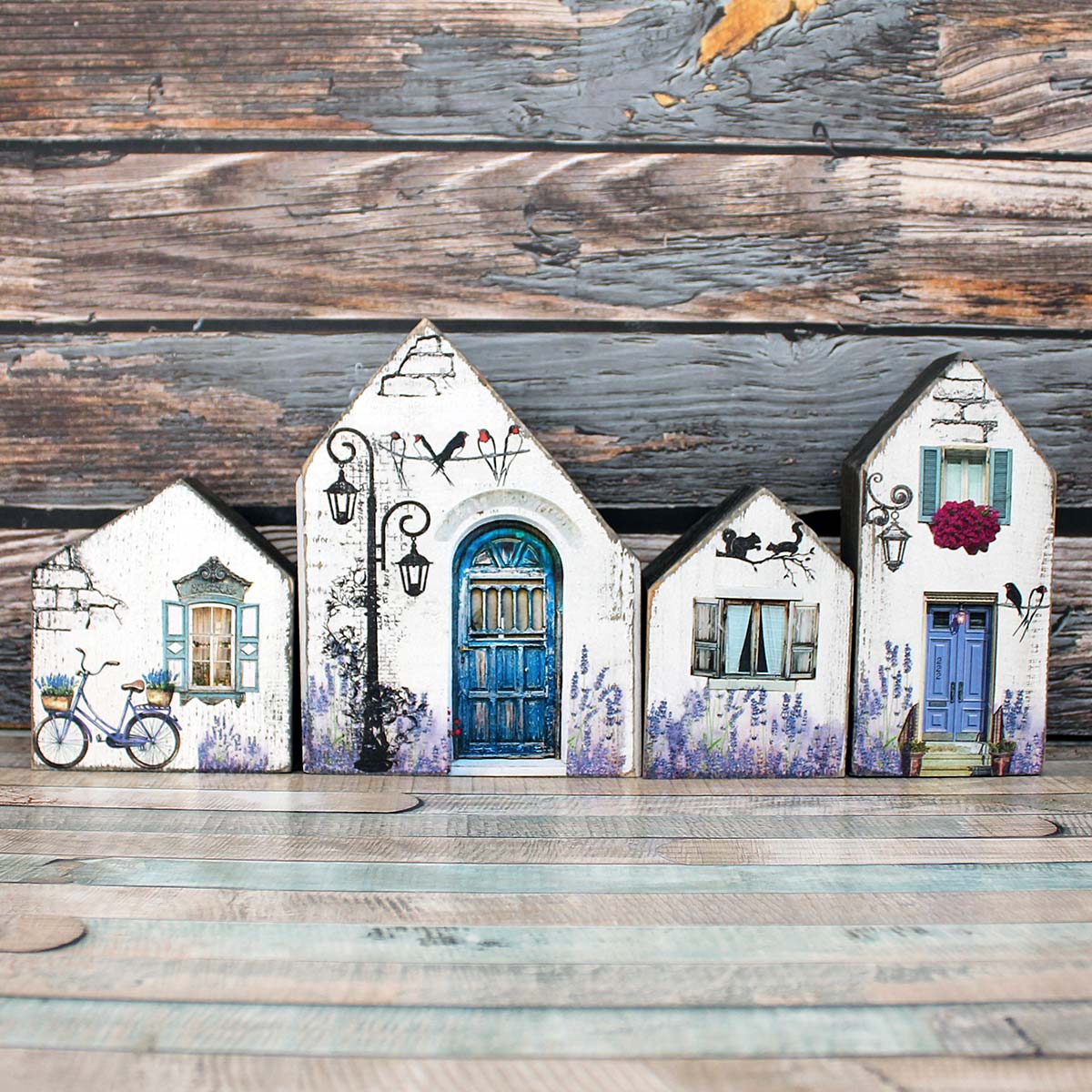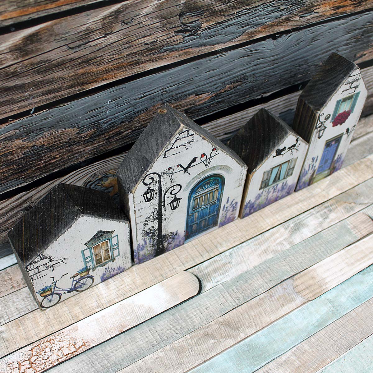 Beautiful set of decorative houses, everything is handmade from our workshop. The houses are made of solid wood and hand-decorated and painted.