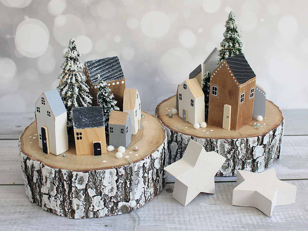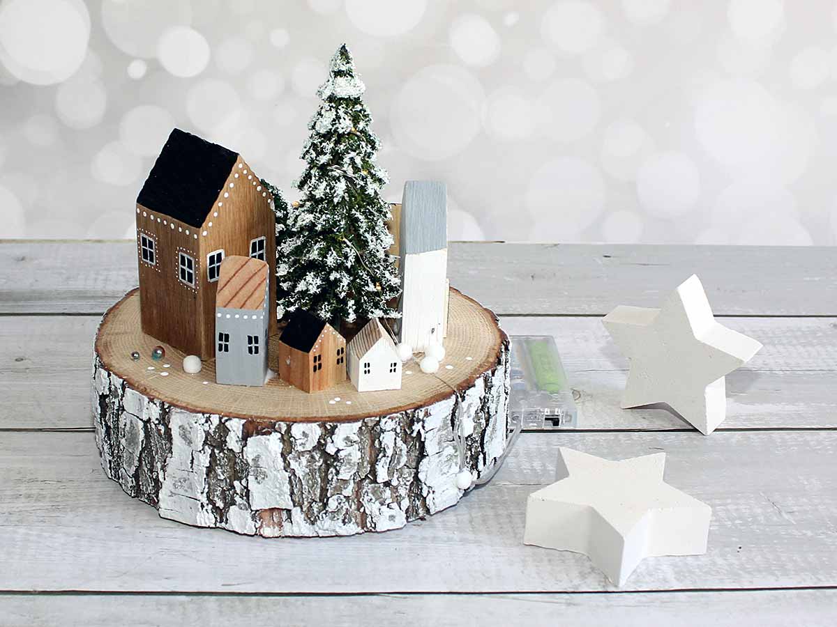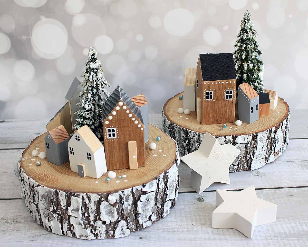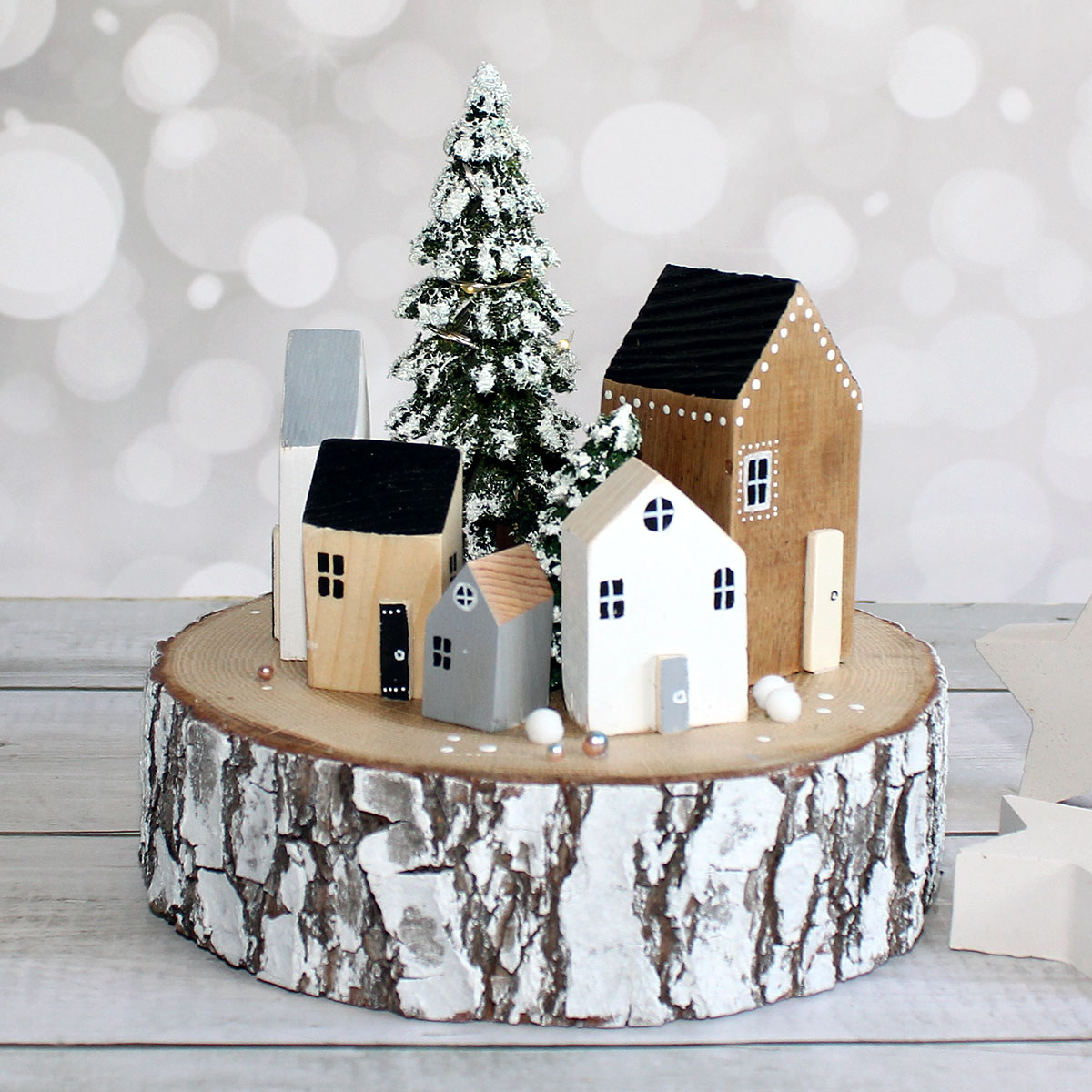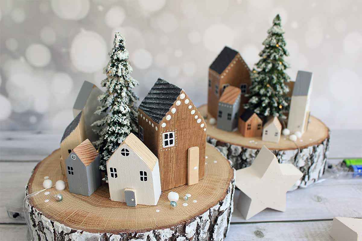 A beautiful set of decorative houses with lights, everything is handmade from our workshop. The houses are made of solid wood and hand decorated and painted.