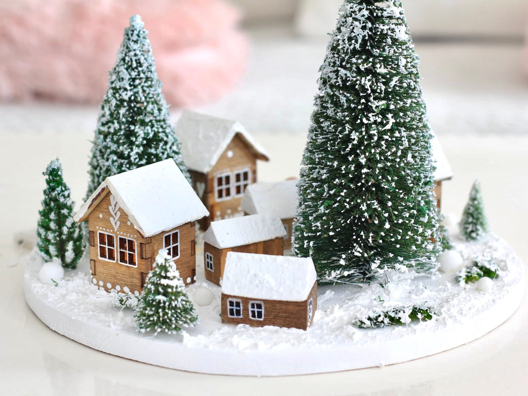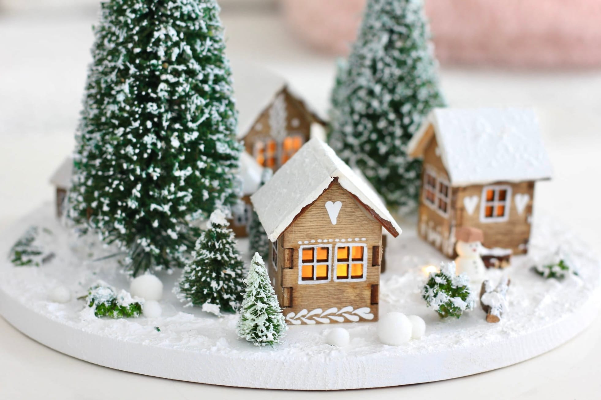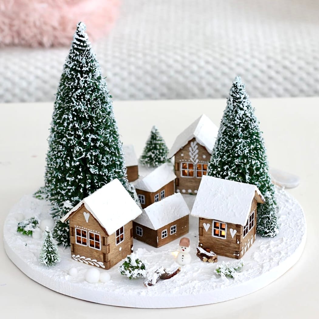 Nechte se okouzlit ručně vyráběnou zimní dekorací, která připomíná zasněženou pohádku. Miniaturní dřevěné domečky inspirované perníkovými chaloupkami doplňují zasněžené stromečky, malý sněhulák a drobné detaily, které vytvářejí kouzelnou atmosféru. Teplé světlo v okýnkách navozuje dojem útulnosti a klidu. Ideální jako vánoční dekorace na stůl, komodu nebo výlohu.