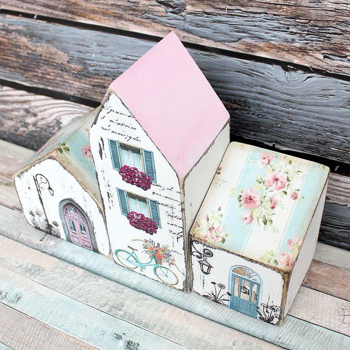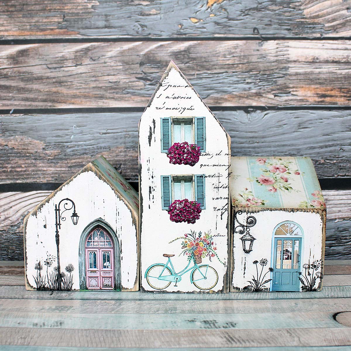 Krásná sada dekorativních domečků, vše je ruční výroba z naší dílny. Domečky jsou vyrobeny z masivního dřeva a ručně dekorované a malované.